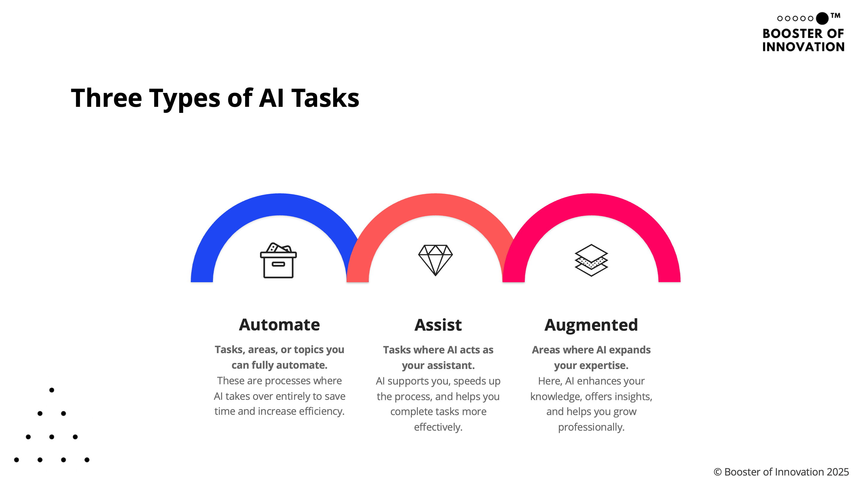 To better understand AI’s full potential, consider these three categories of tasks it can support: