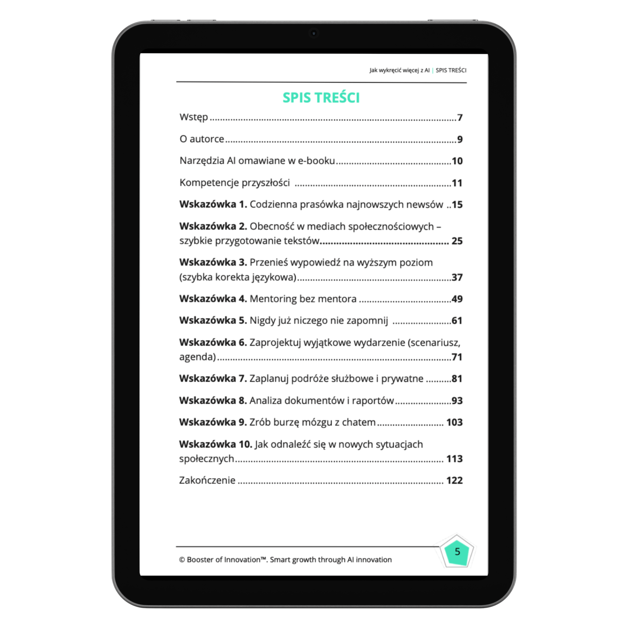 ![SPIS TREŚCI - [ebook] Jak wyciągnąć więcej z AI_ Krystyna Jarek](https://boosterofinnovation.com/wp-content/uploads/2024/03/SPIS-TRESCI-ebook-Jak-wyciagnac-wiecej-z-AI_-Krystyna-Jarek.png)